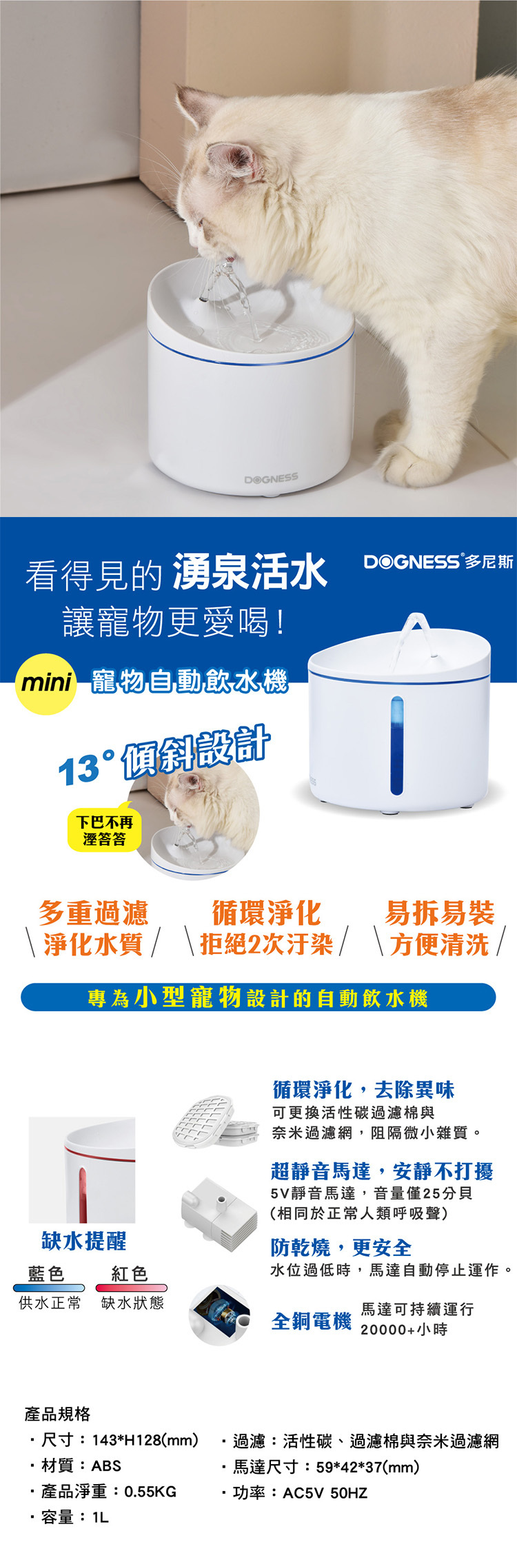 湧泉式出水口與斜面外觀專利設計,讓寵物愛上喝水