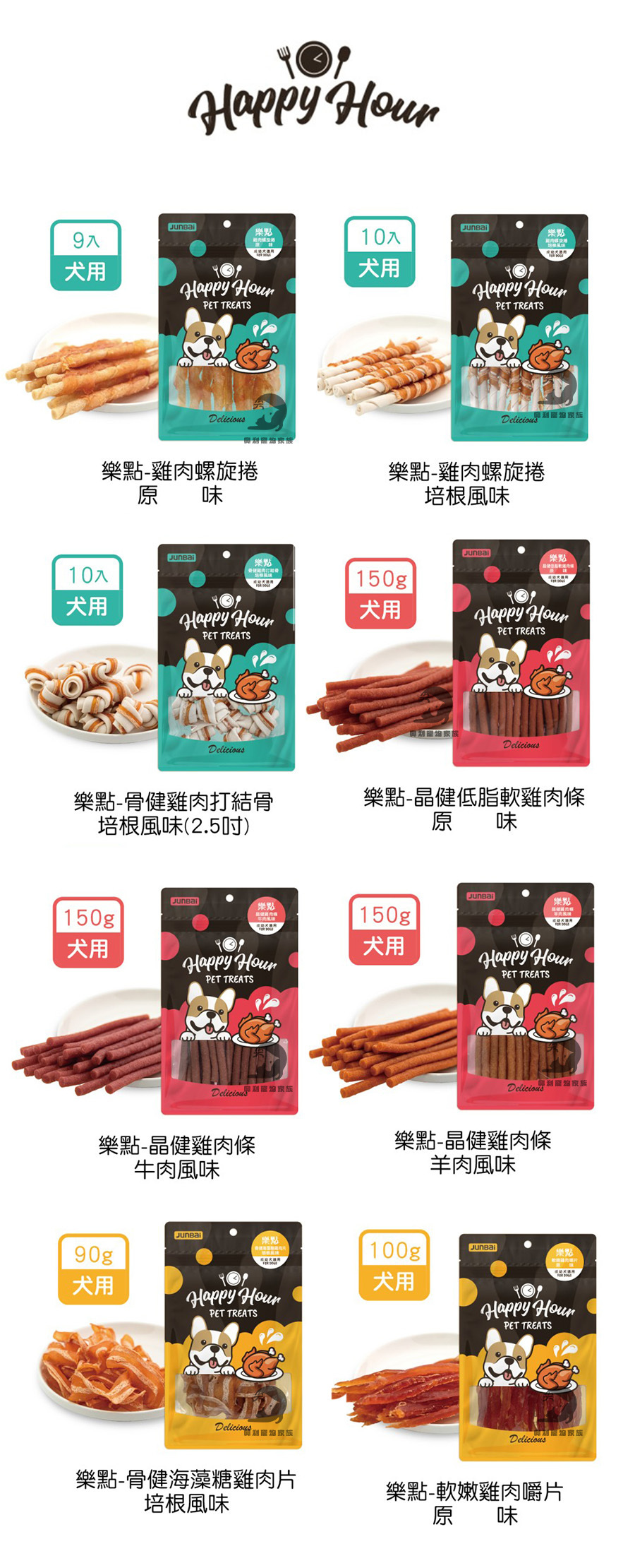 雞肉、海藻糖、香料、二氧化鈦、山梨酸鉀、檸檬酸、食用色素(紅色)、食用色素(黃)、食用色素(焦糖色)、葡萄糖胺、軟骨素