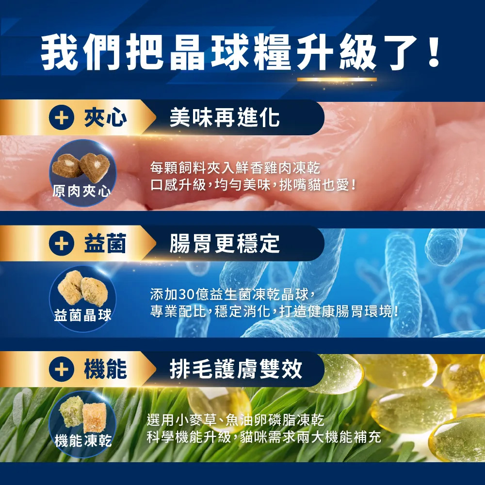 ▸ 機能凍乾 腸胃排毛x亮毛護膚 兩大機能選擇