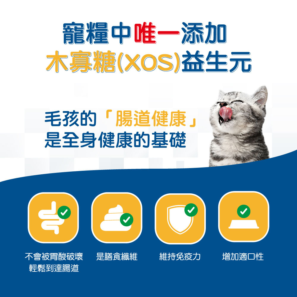 米,玉米麩,雞肉,脫水鮭魚,動物脂肪(雞脂肪含量99.6%,以天然抗氧化物保存),燕麥,水解動物蛋白,脫水豌豆,全蛋粉,魚油(鮭魚油) ,牛磺酸,木寡糖(3 g / kg),水解酵母(甘露寡糖來源),絲蘭萃取。