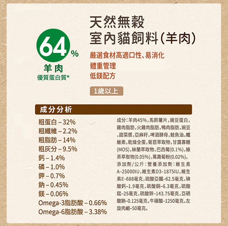 🎁歐克斯OAKS 天然無穀室內貓(羊肉) 有機食材 貓咪飼料 貓糧