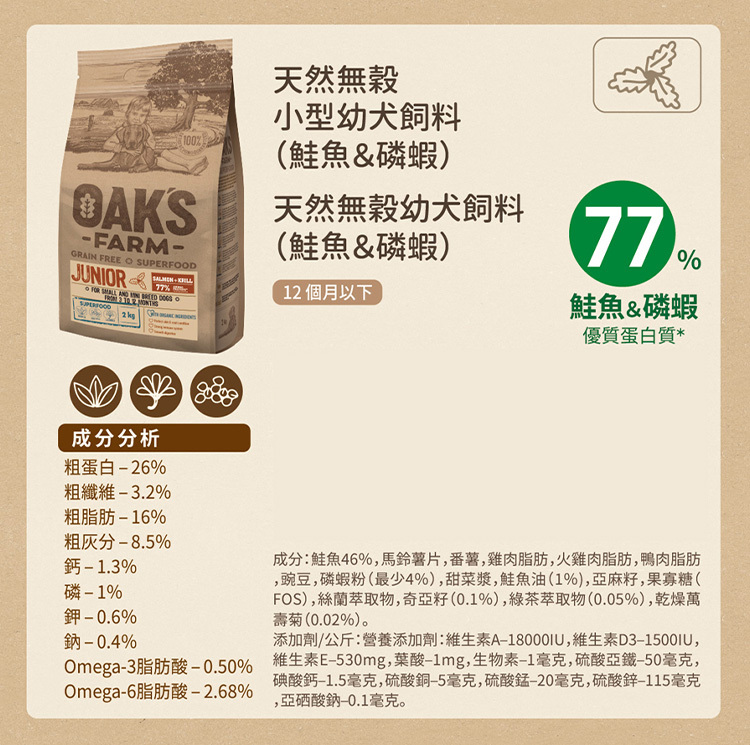歐克斯OAKS 小型幼犬(鮭魚+磷蝦) 天然無穀狗飼料 幼犬飼料