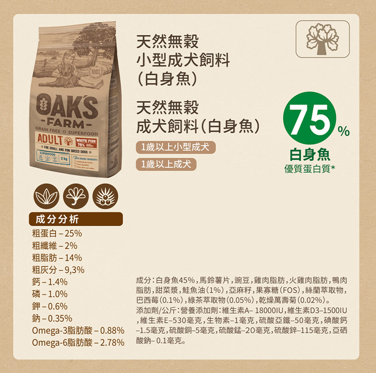 歐克斯OAKS 小型成犬 (白身魚) 天然無穀狗飼料 小型犬