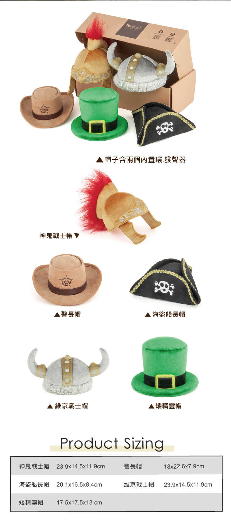 ♦五種可愛帽子造型玩具,內含啾啾聲玩具