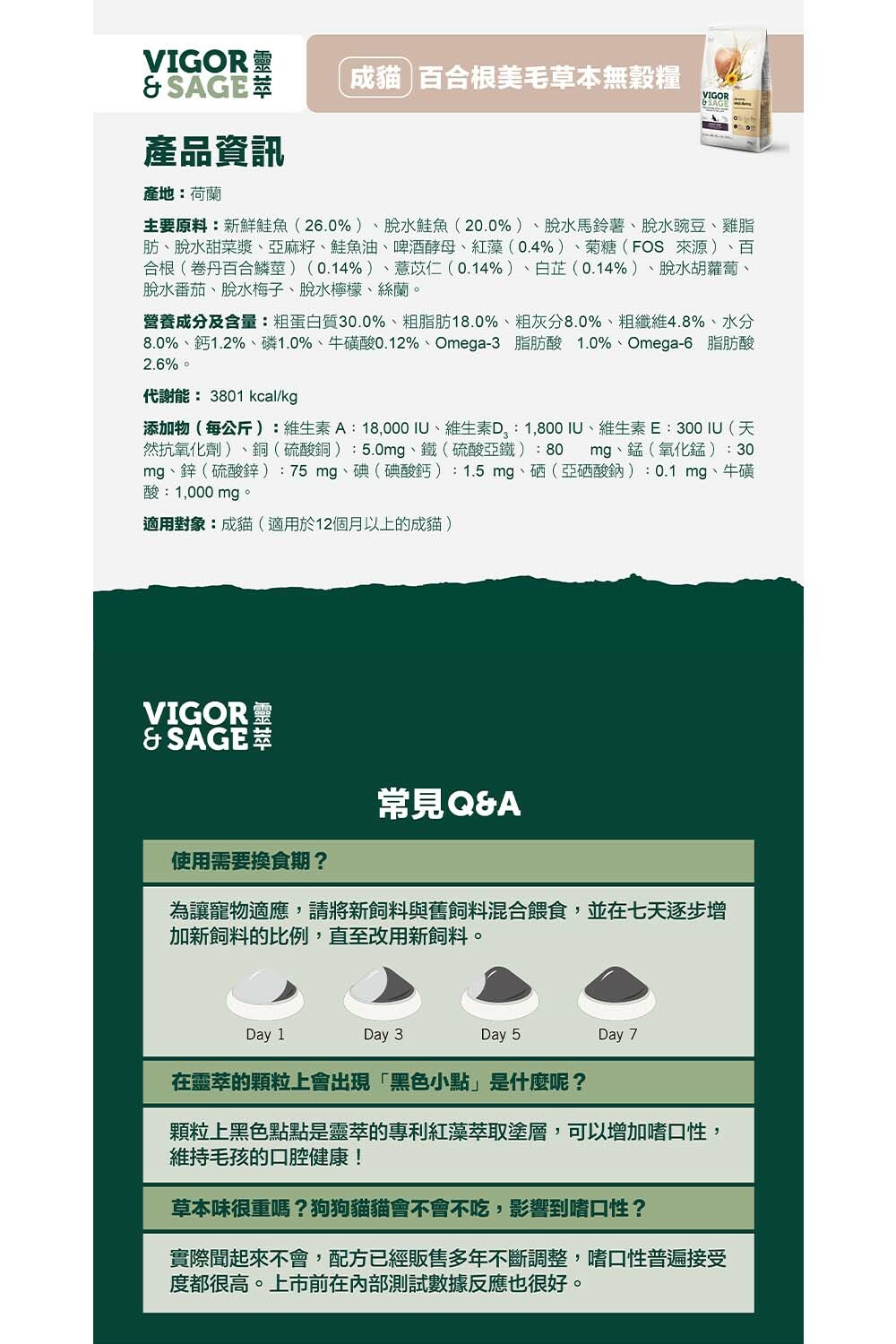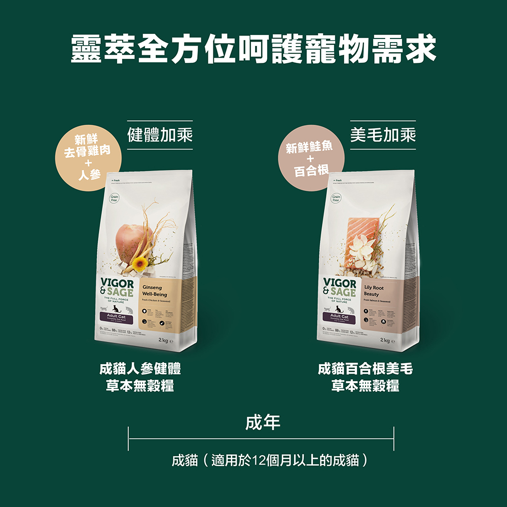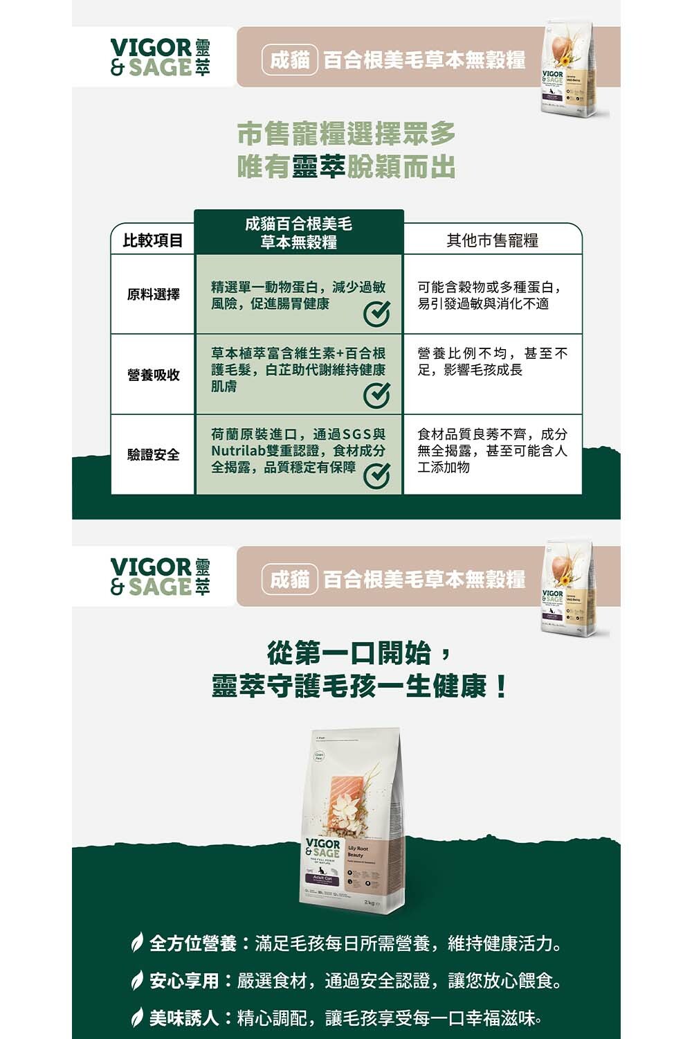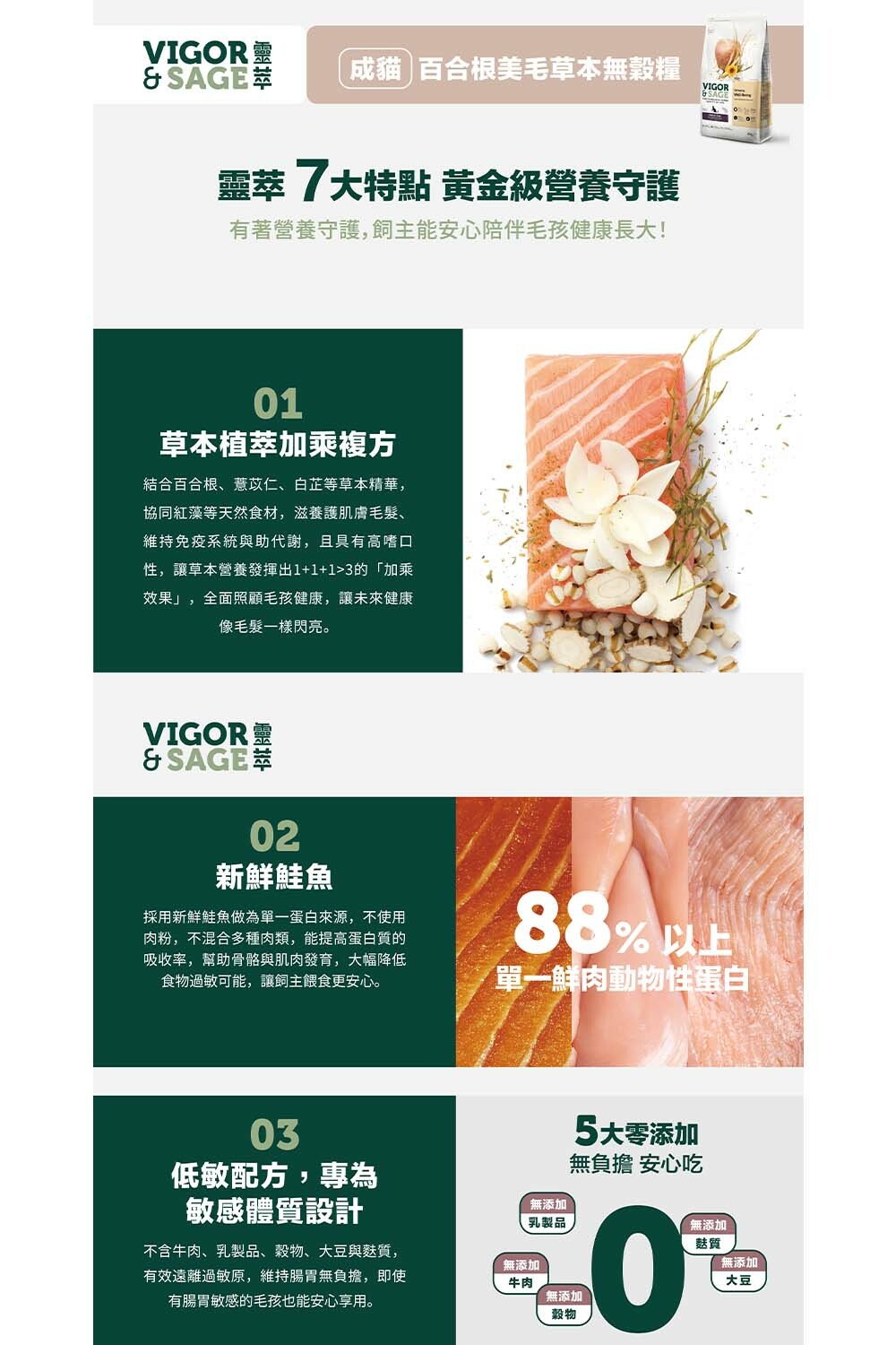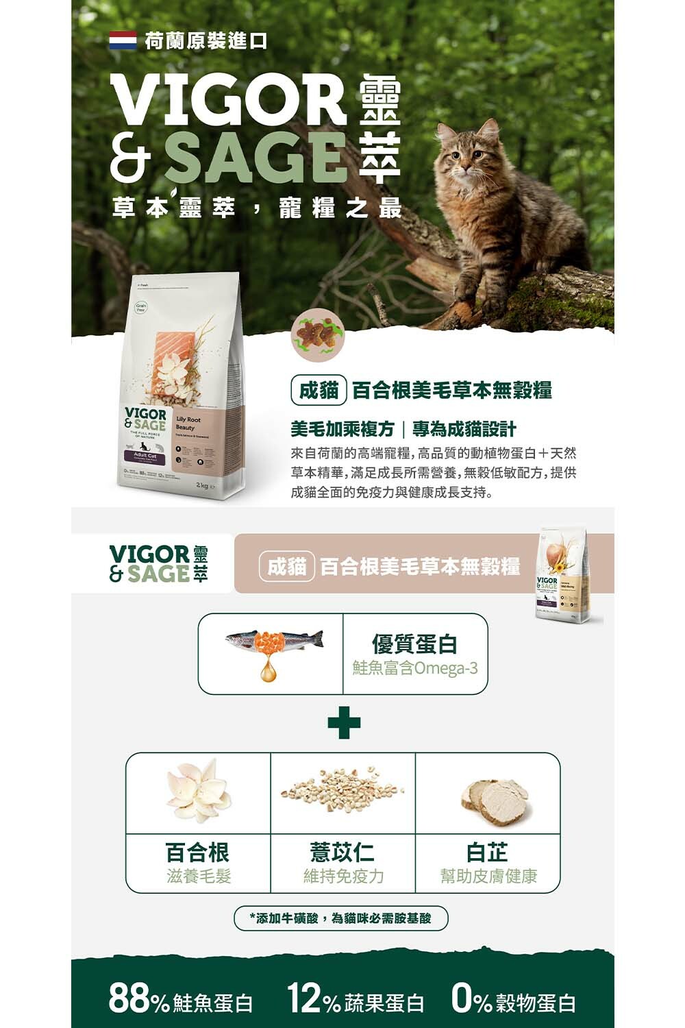Vigor & Sage 靈萃|(百合根美毛)草本無穀貓糧 無穀鮭魚 貓咪飼料 成貓飼料 貓糧